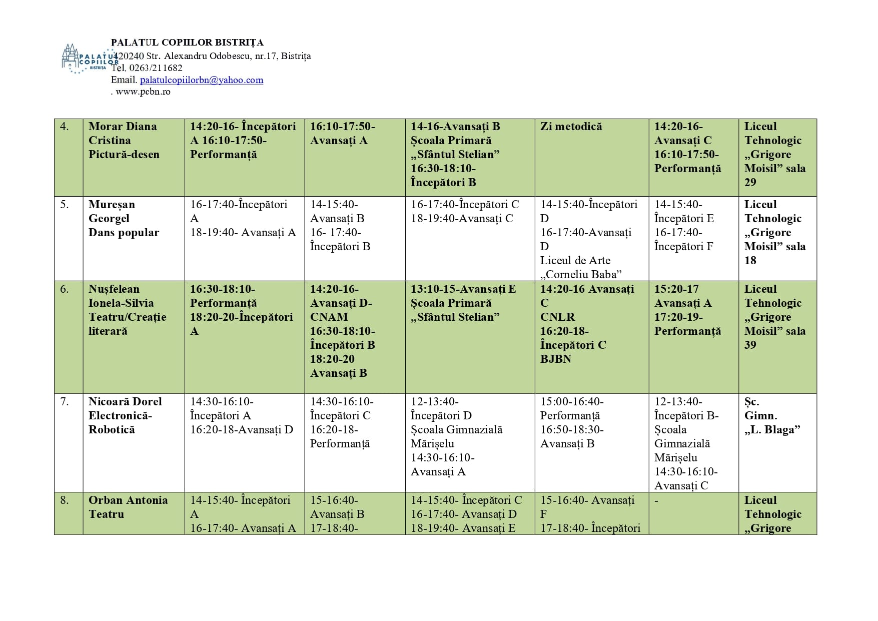 Află programul actualizat al cercurilor educative din cadrul Palatului Copiilor Bistrița și organizează activitățile extrașcolare ale copilului tău.
