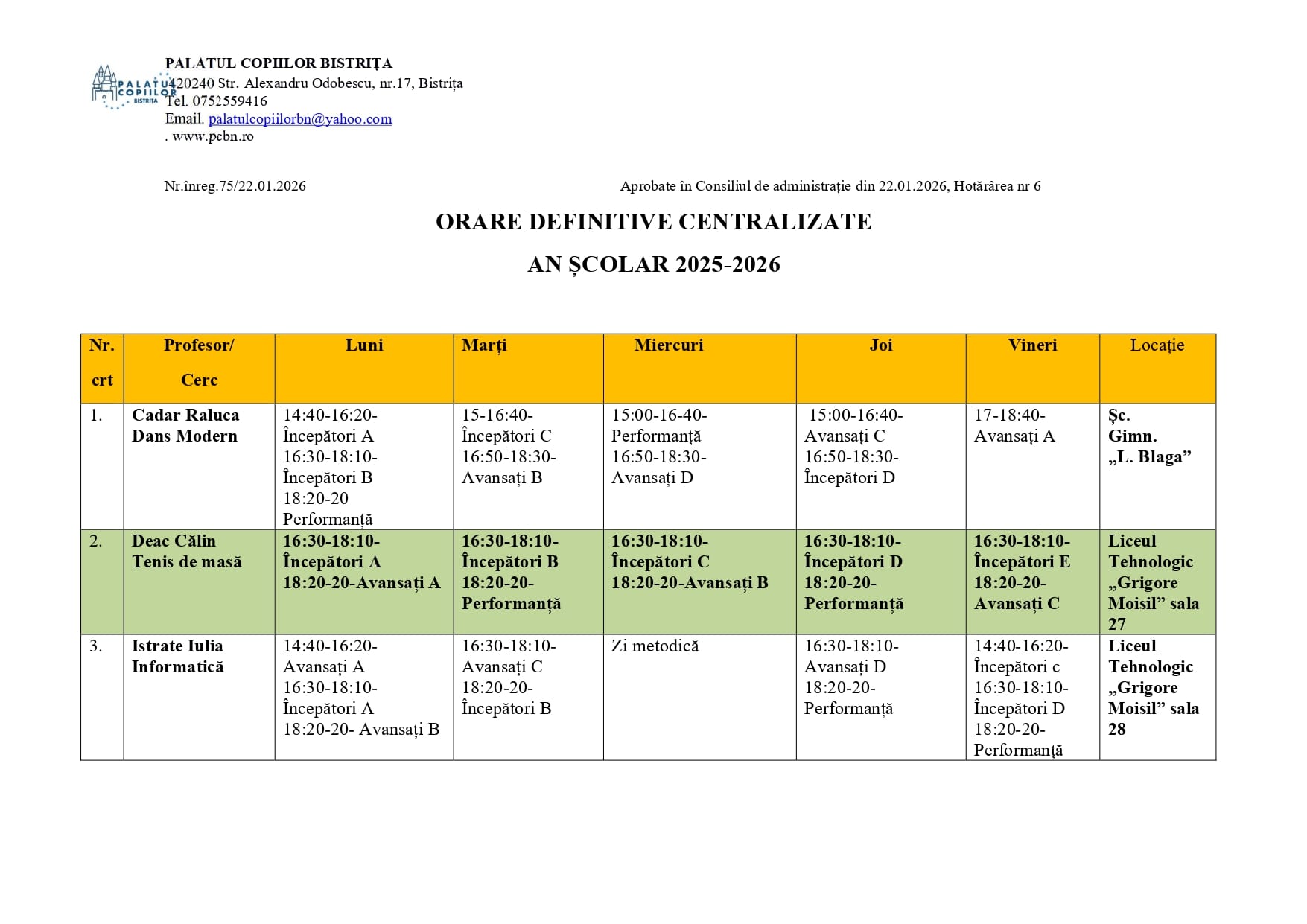 - Tenis de masă - DEAC CĂLIN - [email protected]