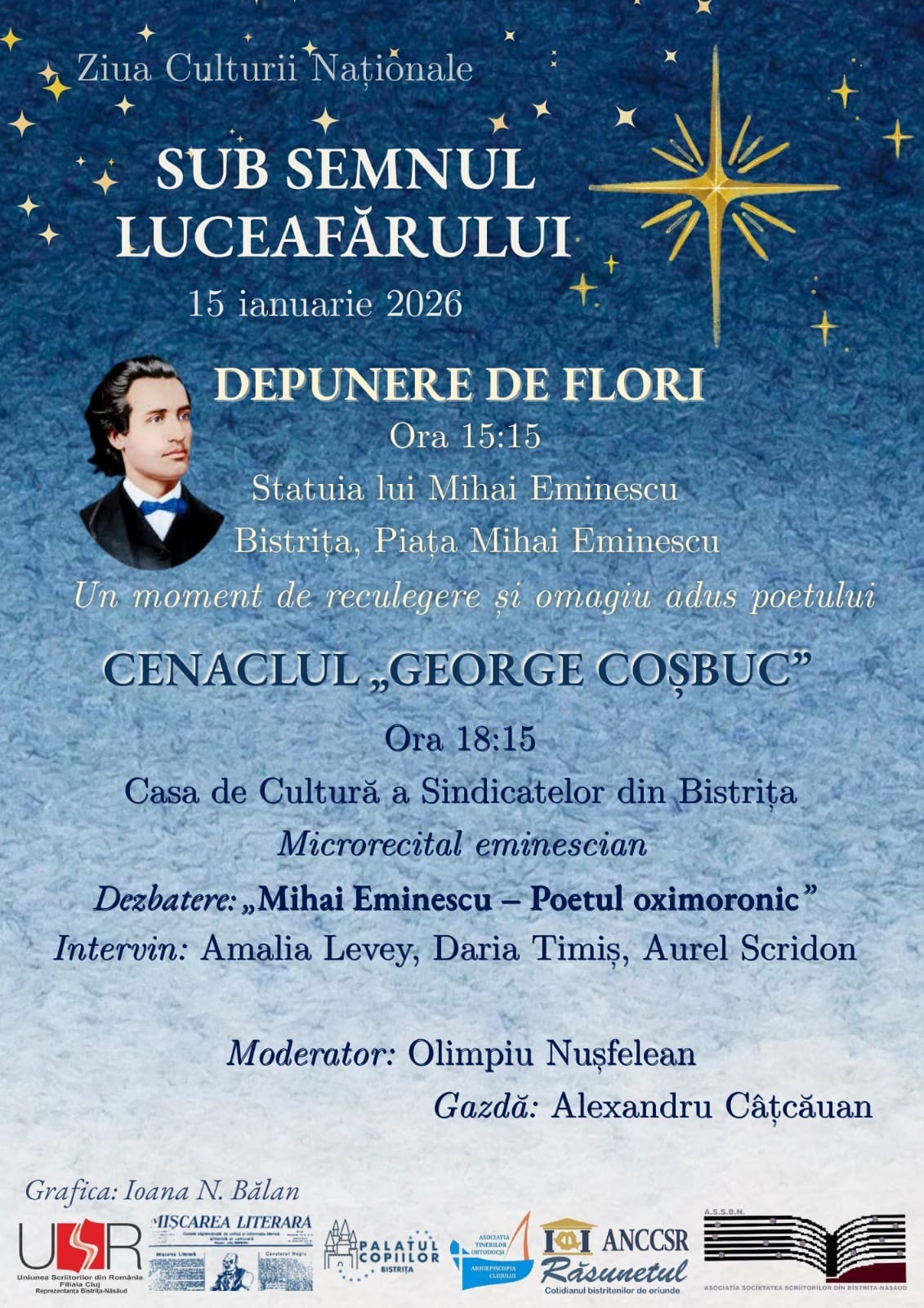 De Ziua Culturii Naționale, Palatul Copiilor Bistrița, alături de alte instituții culturale, vă așteaptă la evenimente organizate Sub semnul Luceafărului!