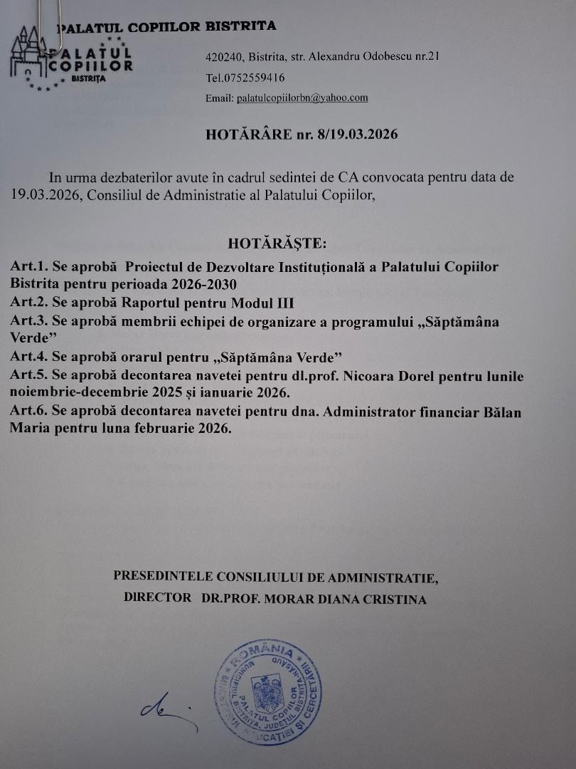 Hotărâri Consiliul de Administrație